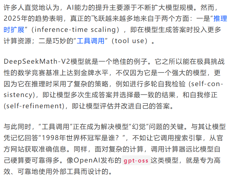 - 真正的进步不只靠更大的模型,更靠“更聪明”的推理与工具调用