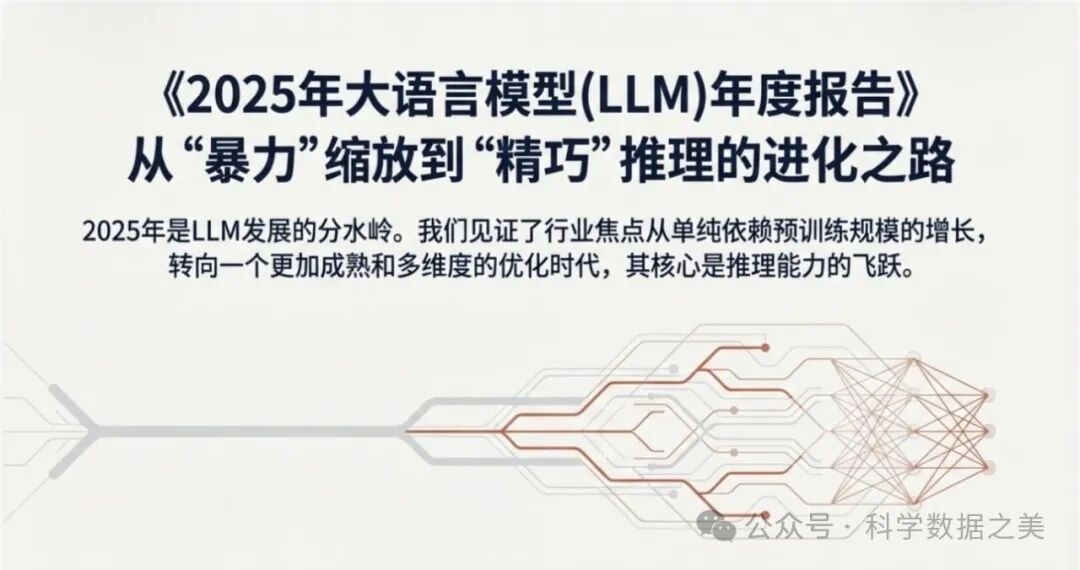 2025年大语言模型5大关键趋势:1)模型训练成本骤降,比预期低一个数量级;2)AI排行榜可信度降低,跑分至上时代终结;3)技术突破转向智能推理与工具调用,而非单纯扩大模型规模;4)AI定位从替代者转变为国际象棋式协作搭档;5)私有数据成为AI竞争新战场。大模型发展已进入系统工程阶段,未来核心在于驾驭AI而非构建AI。