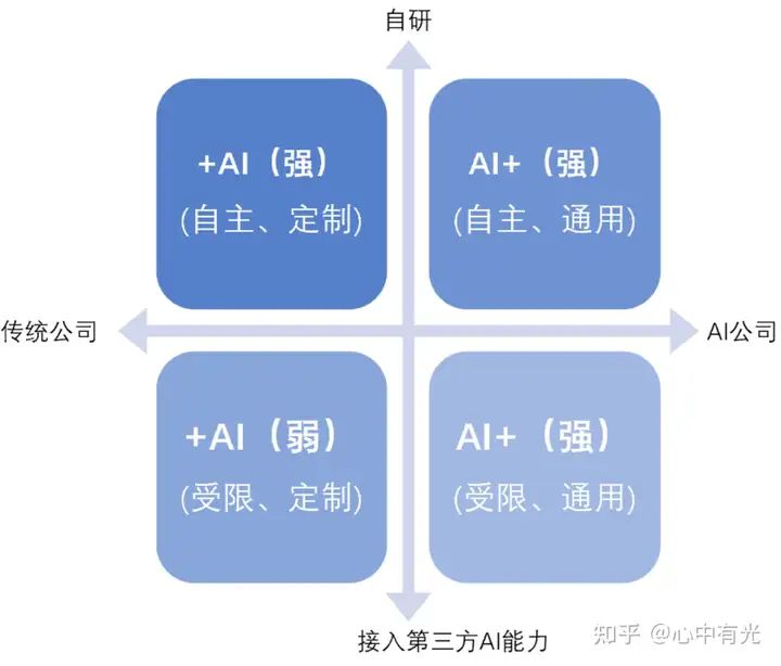 - 1、根据公司类型(AI公司与非AI公司)及是否自研区分AI产品经理对AI能力的要求: