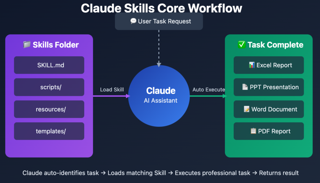 技能是包含指令、脚本和资源的文件夹,Claude会在与任务相关时动态发现并加载这些内容。可以把它们看作是专门的培训手册,赋予Claude在特定领域专业知识