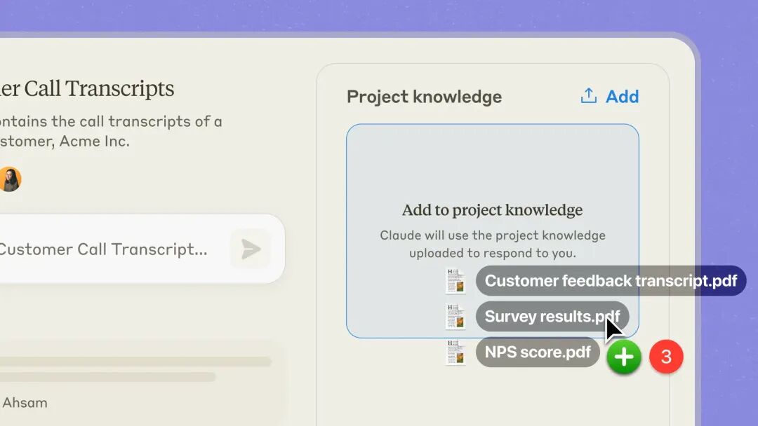 Claude针对其产品,将Projects定义为是自成一体的工作区,拥有自己的聊天记录和知识库。每个Projects都包含一个20万上下文窗口,您可以上传文档、提供上下文,并设置适用于该Project内所有对话的自定义指令。