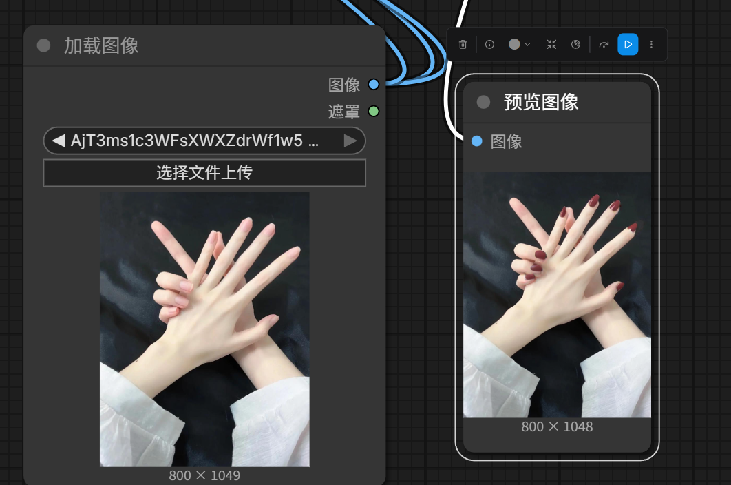 连接完成以后,点击运行,第一个 AI 美甲作品诞生!效果如下图: