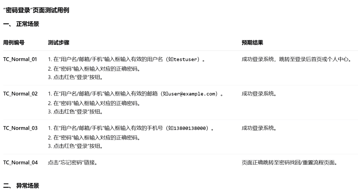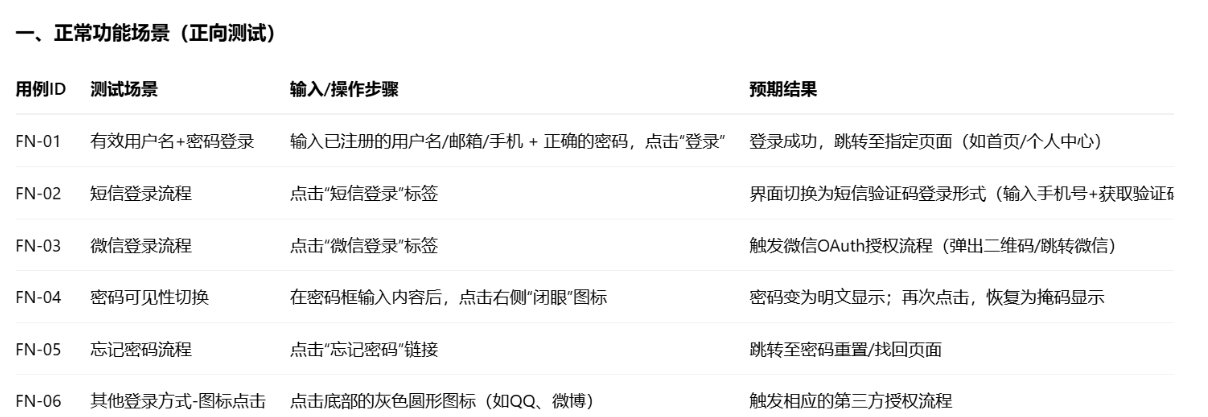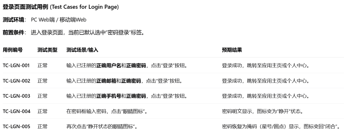 请基于该登录页面,生成测试用例,包含正常、异常和边界场景。