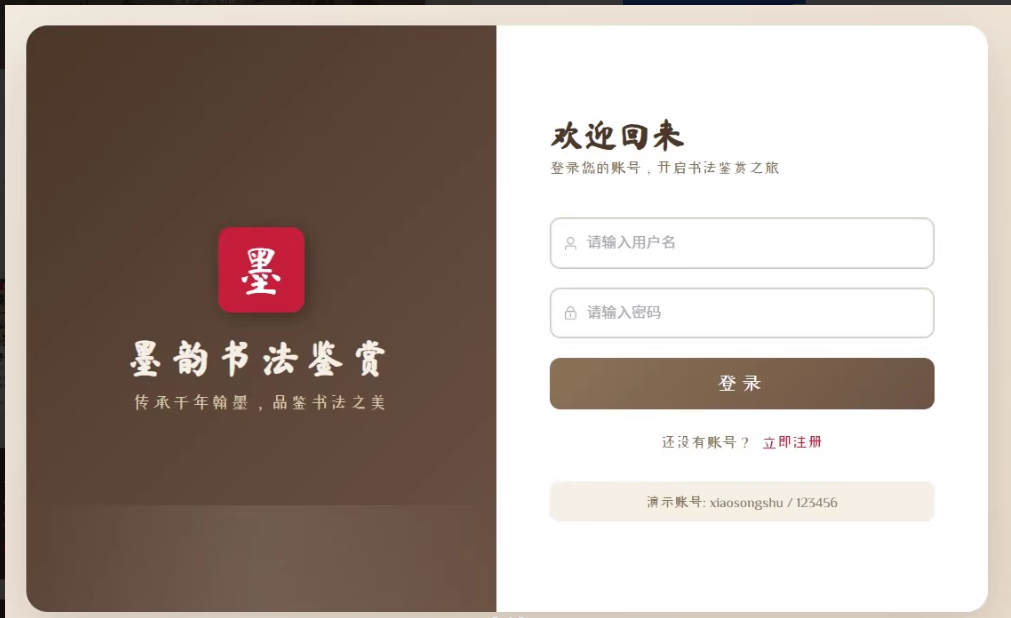 基于SpringAI+Vue3的墨韵书法鉴赏系统正是在这样的时代背景下应运而生。本项目旨在构建一个融合人工智能技术与现代Web开发框架的书法艺术数字化平台,通过技术手段重新诠释和传播传统书法文化。系统将以SpringAI作为后端智能核心,结合Vue3前端框架,打造一个集书法作品智能鉴赏、风格分析、临摹指导、知识普及于一体的综合文化平台。