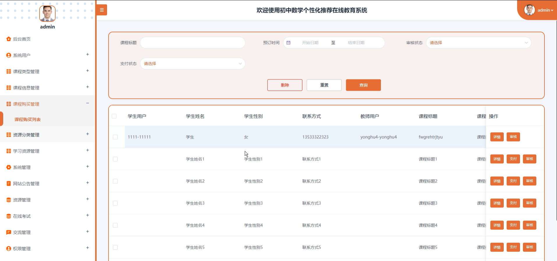 3. 课程购买管理:查看和管理学生的课程购买情况,分析课程销量。