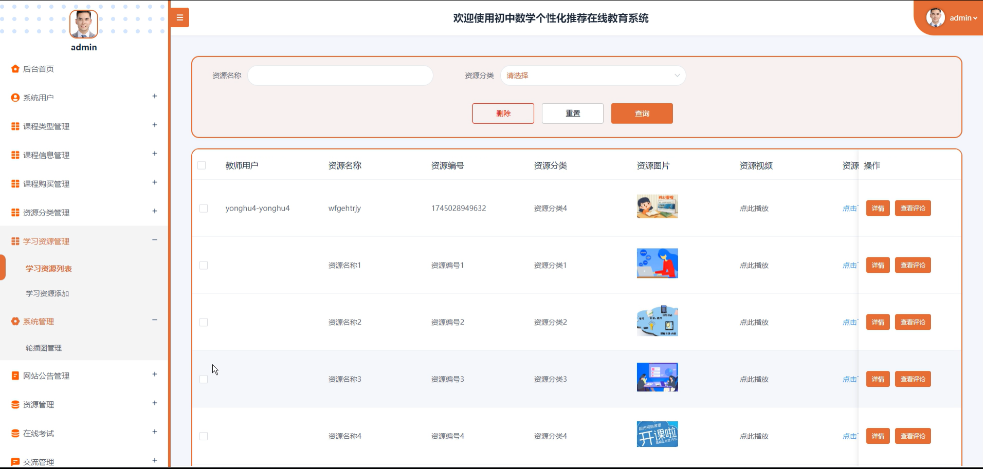 7. 学习资源管理:管理员可以上传、维护和管理平台中的各类学习资源。