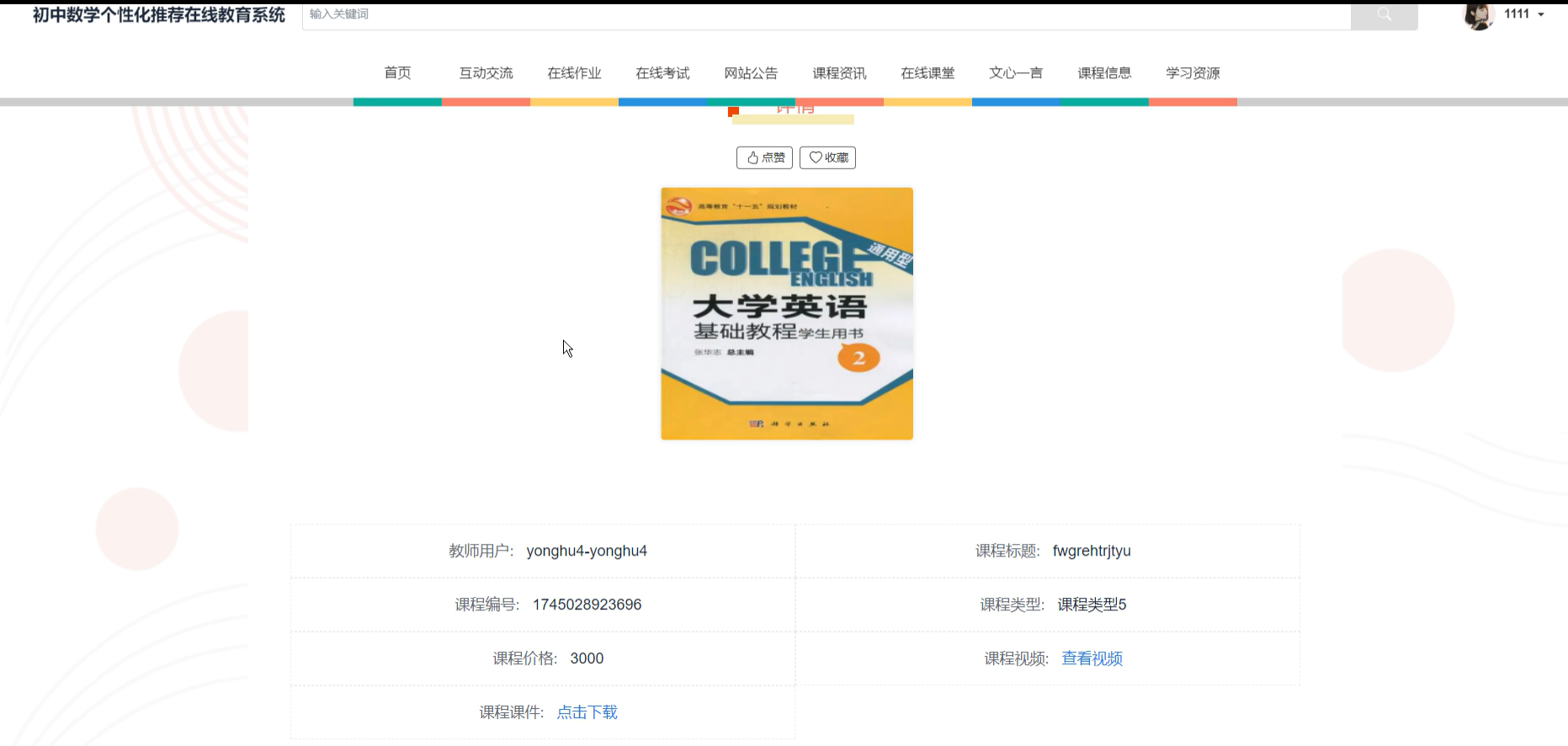 4. 在线考试:提供模拟考试和评测功能,帮助学生检测学习成果。