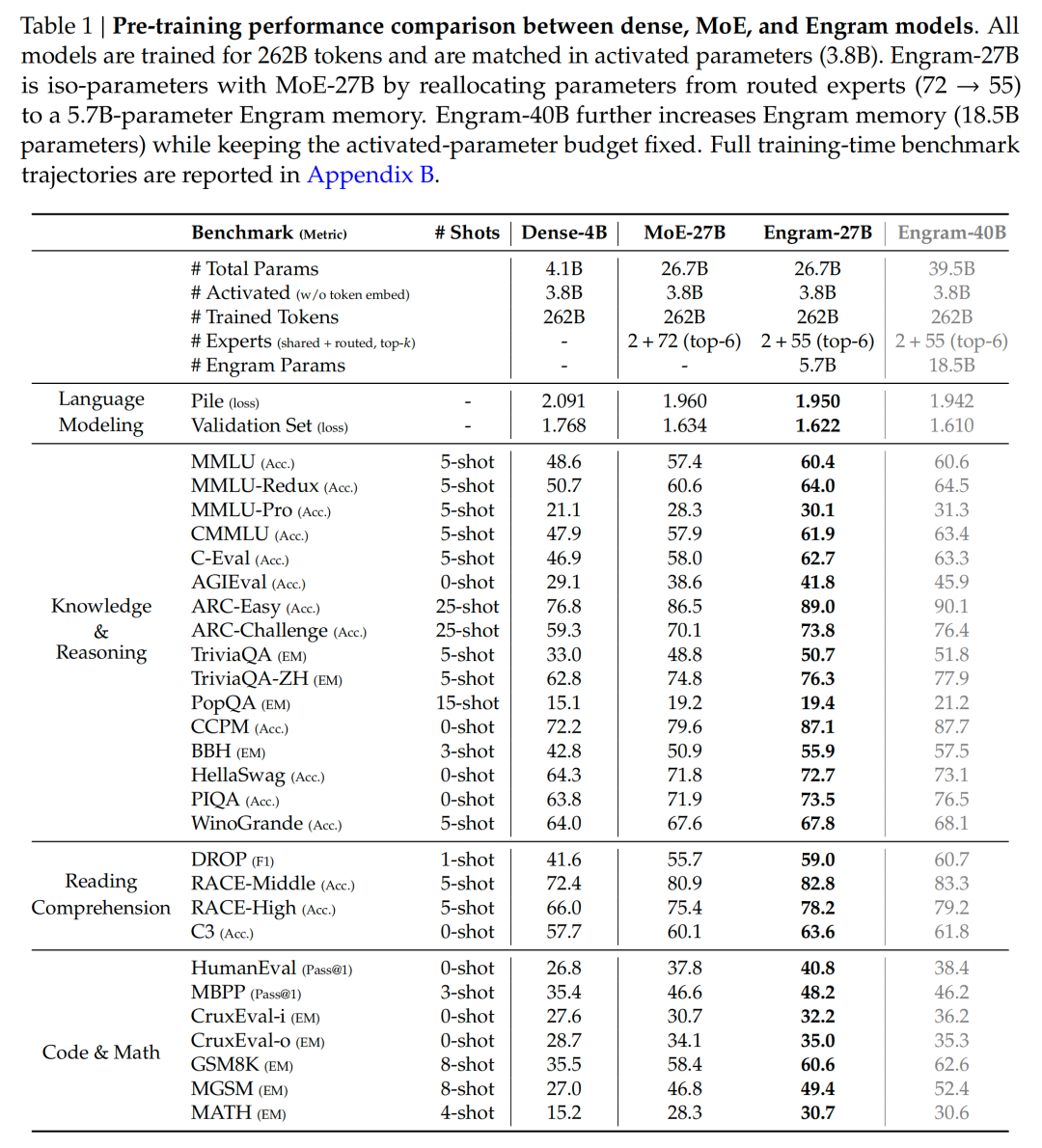 - 以及 Engram-40B(总参数量 395 亿)。
