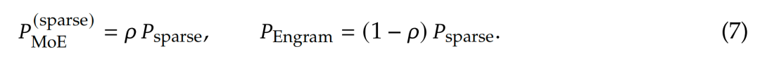 - 有限约束下的分配:在总参数量和训练计算量固定(即等参数、等 FLOPs)的情况下,应该如何在 MoE 专家与 Engram 嵌入之间划分稀疏容量?