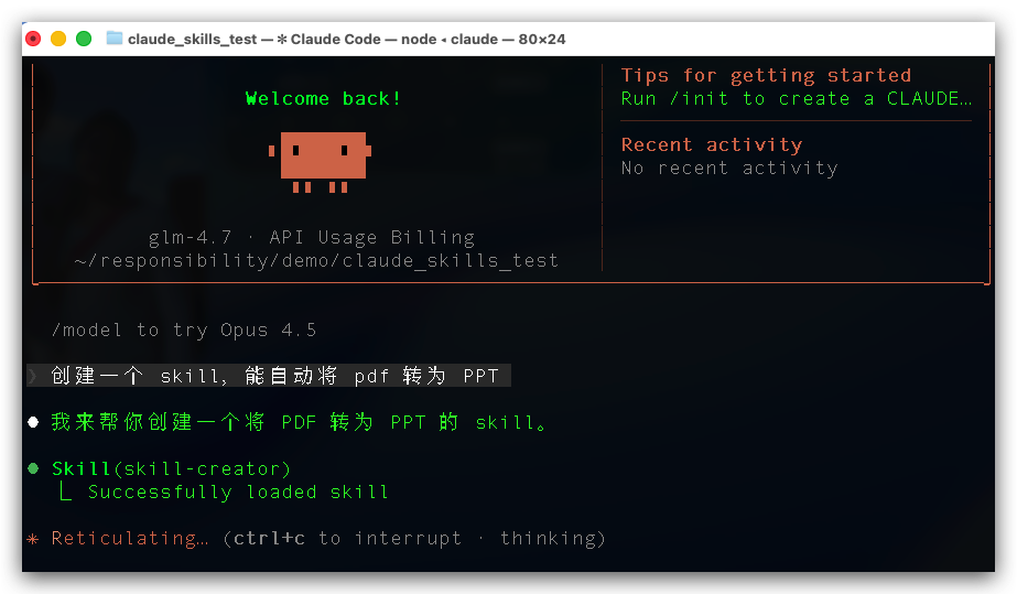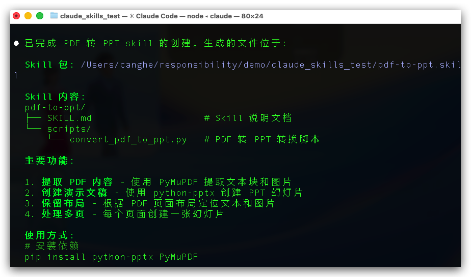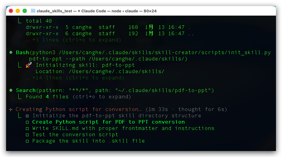 接下来就什么都不用管了,很快就生成好了这个 skill: