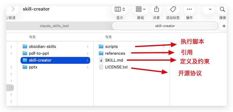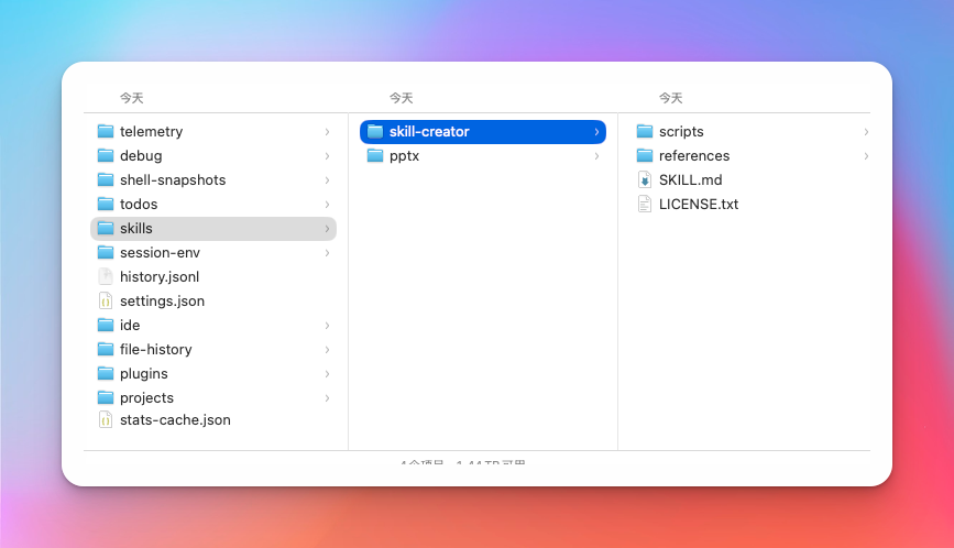 从使用层面上理解 Skills 是包含指令、脚本和资源的文件夹,供 LLM 可以动态加载,底层采用的是渐进式披露,也就是仅在需要的时候加载技能的详细指令,能有效节省宝贵的上下文窗口。