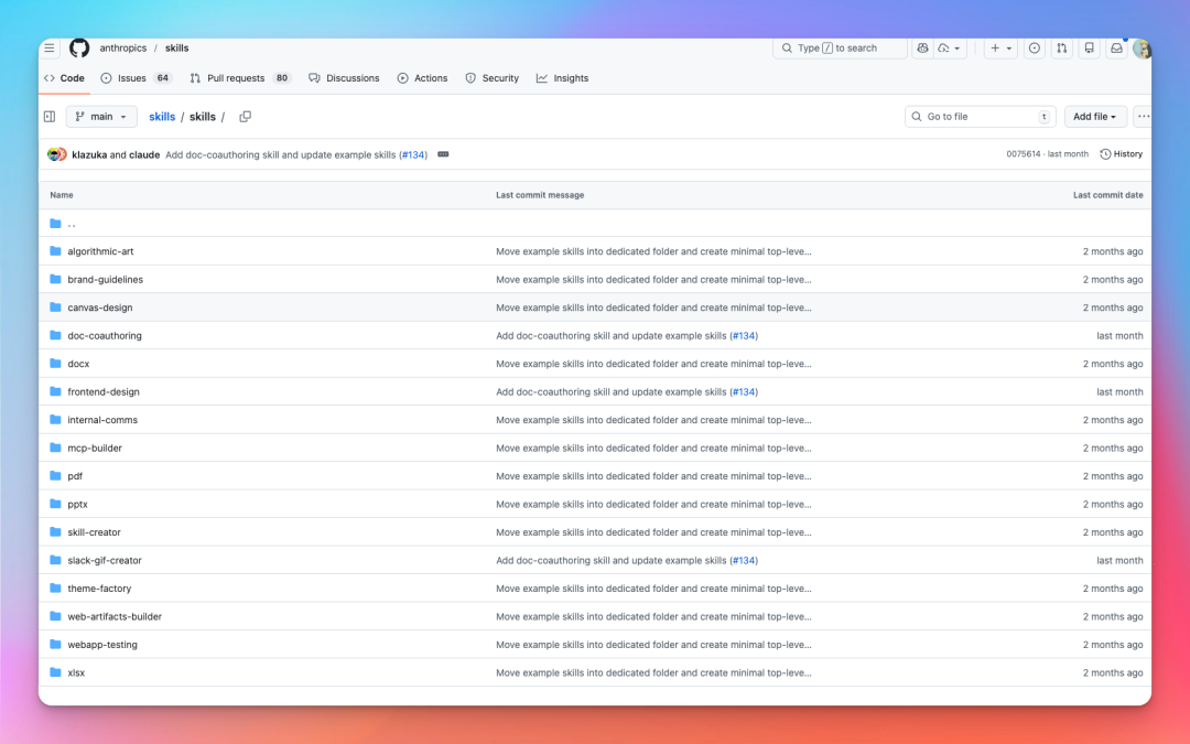 Anthropic 官方的 skill 仓库提供了不少有用的 skill,开源地址如下: