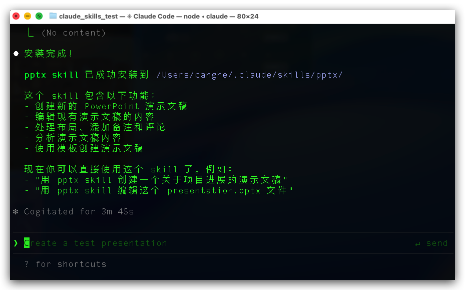 靠,非常不错啊。一个做 PPT 的 skill 就这样安装好了。