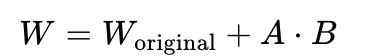 - 核心思想是将权重矩阵 W 分解为两个低秩矩阵 A 和 B 的乘积,即: