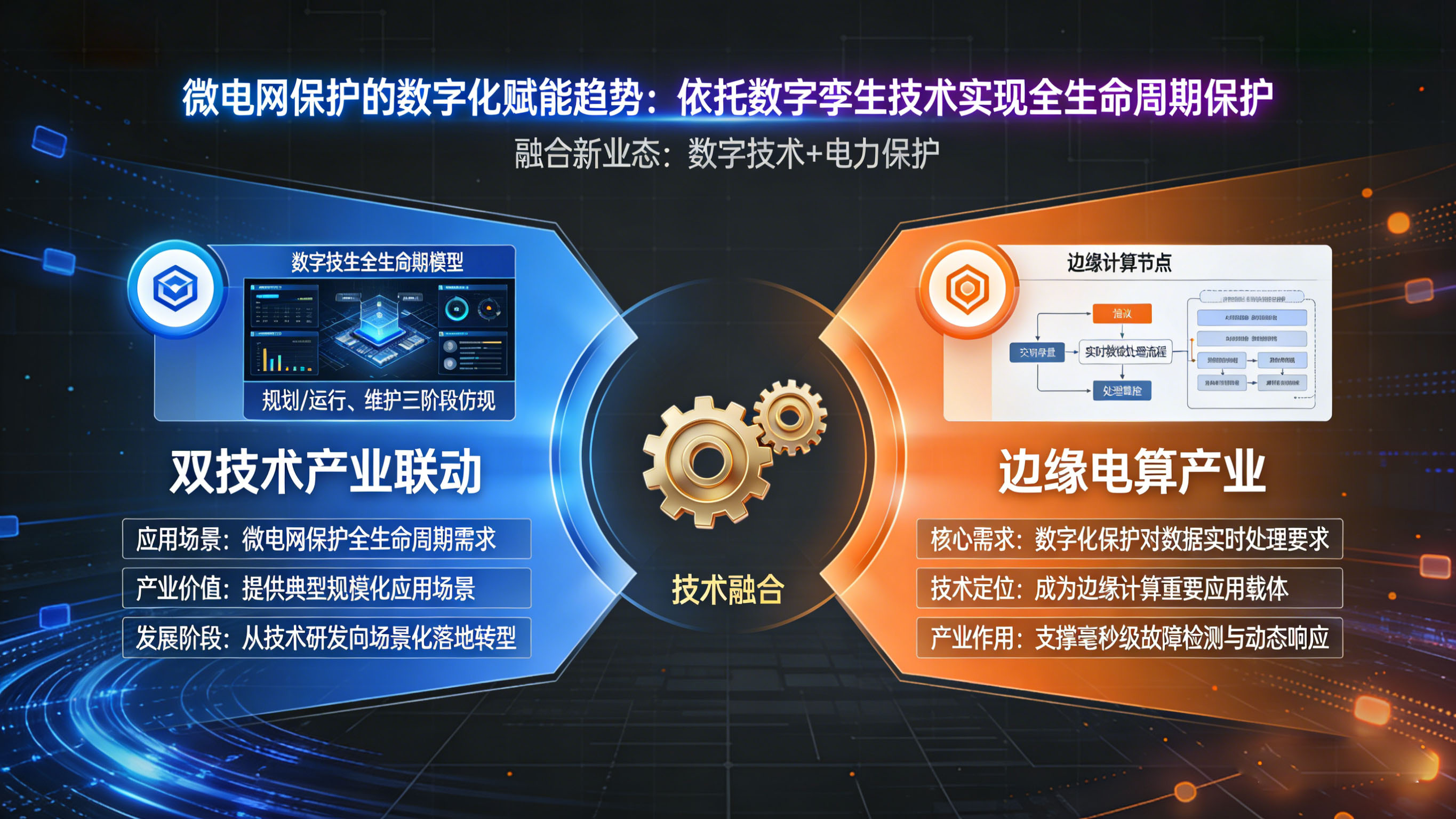 微电网保护的数字化赋能趋势,核心是依托数字孪生技术实现全生命周期保护,这一需求直接推动数字孪生、边缘计算等新兴技术产业在电力领域的落地应用,加速产业从“技术研发”向“场景化落地”转型,形成“数字技术+电力保护”的融合新业态。