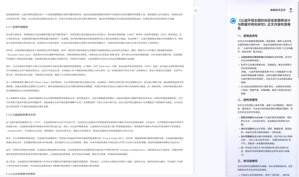 定位:字节跳动旗下科研垂直 AI 助手。核心优势:依托 Doubao 大模型聚焦学术场景深度优化,中文学术表达自然流畅,新手友好;特色功能:智能选题推荐(结合近 3 年热点输出 10+ 创新方向)、文献摘要生成、逻辑衔接优化,查重模块可将重复率稳定在 12%-18%;适合场景:本科及硕士论文框架搭建、内容填充、文科类中文论文写作。