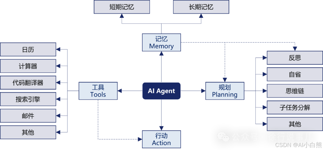 AI Agent = 大语言模型(LLM)+记忆(Memory)+规划(Planning)+工具(Tools)