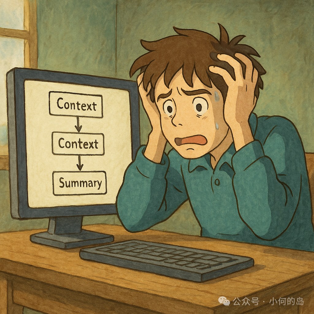 你可能遇到过 Agent 聊着聊着就“卡住”的情况,比如打印 ---SUMMARIZER--- 后没反应。这源于一个根本性错误:我们让一个“摘要员”去解决对话太长的问题,但它自己却先被“太长”的对话累垮了。