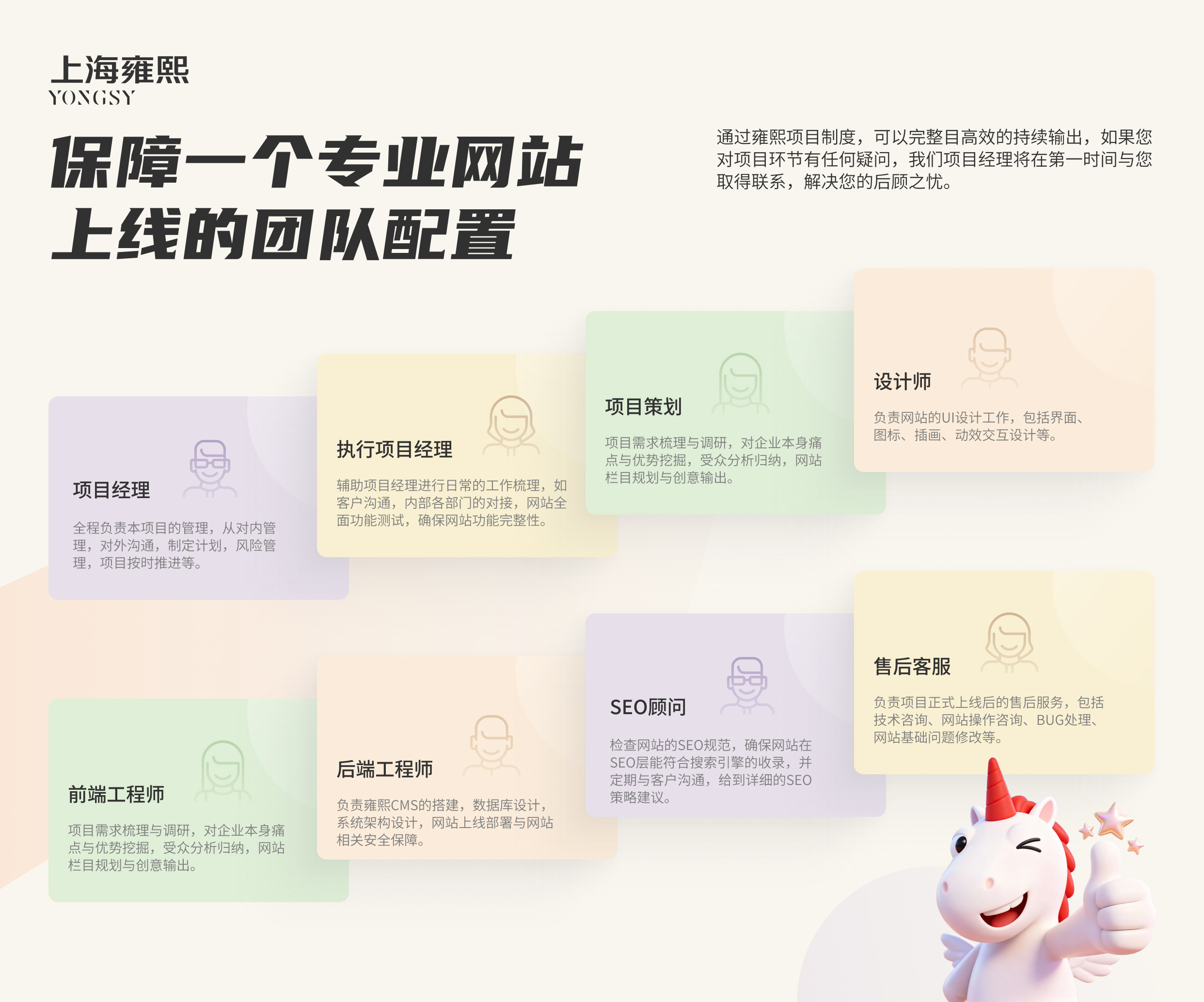 作为国内较早深耕高端定制建站的品牌,上海雍熙的核心定位是“数字化网站升级创导者”,不只是做简单的网站开发,更侧重通过建站为企业打通线上品牌+营销全场景,这也是它区别于很多同行的核心优势。从实际服务能力来看,无论是技术沉淀、服务范围还是行业适配性,都表现得比较全面。