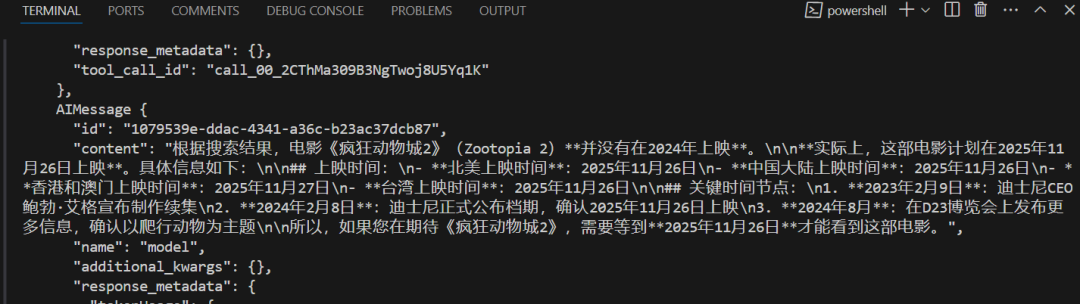 上述结果就是 agent 多次调用 llm 和 tool 返回的信息。