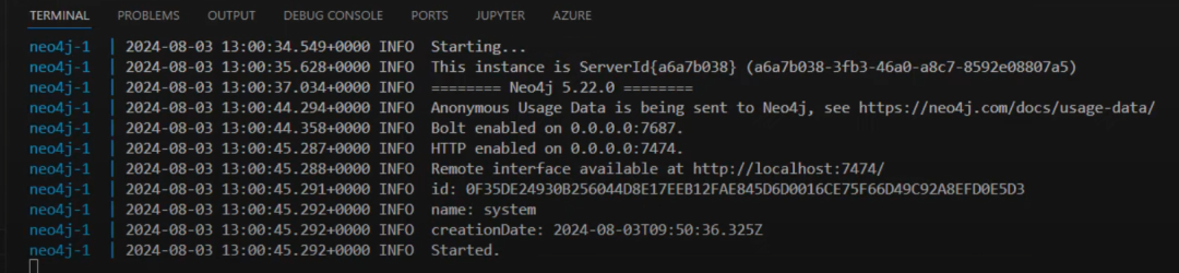 这将设置所有内容,并且可以直接使用。可能需要几秒钟,之后你会看到数据库正在运行。