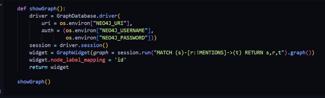 如果你不熟悉 Neo4j 可能会觉得有点复杂,但它的意思是 Neo4j 应该返回所有通过 mentions 类型的关系连接的节点对,我们想返回 s, r, 和 t。s 是起始节点,r 是结束节点,t 是关系。