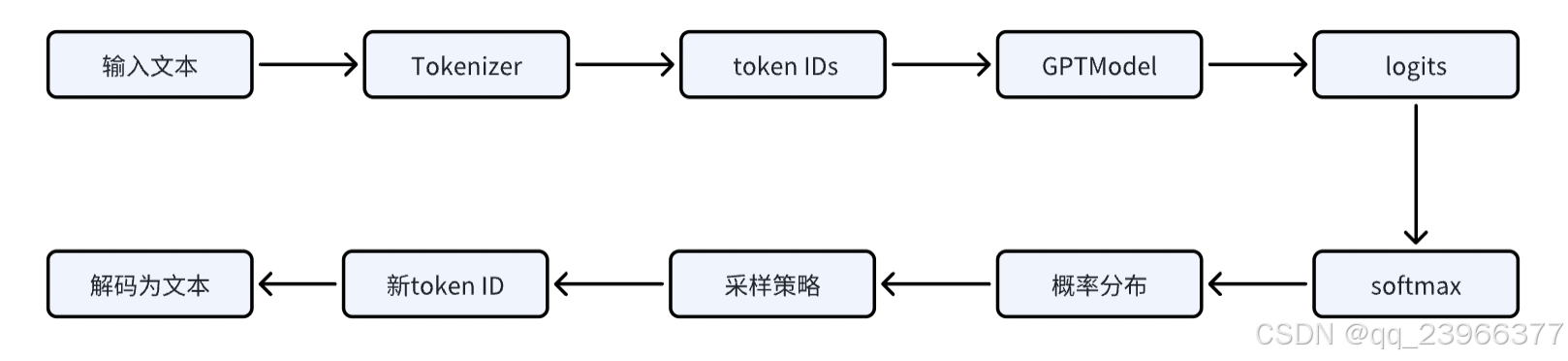 从输入文本到输出文本,整体流程如下:
