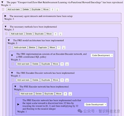 PaperBench 的 Rubric 将“复现论文”分解为由粗到细的多个层级,最底层为客观、可操作的子节点,如: