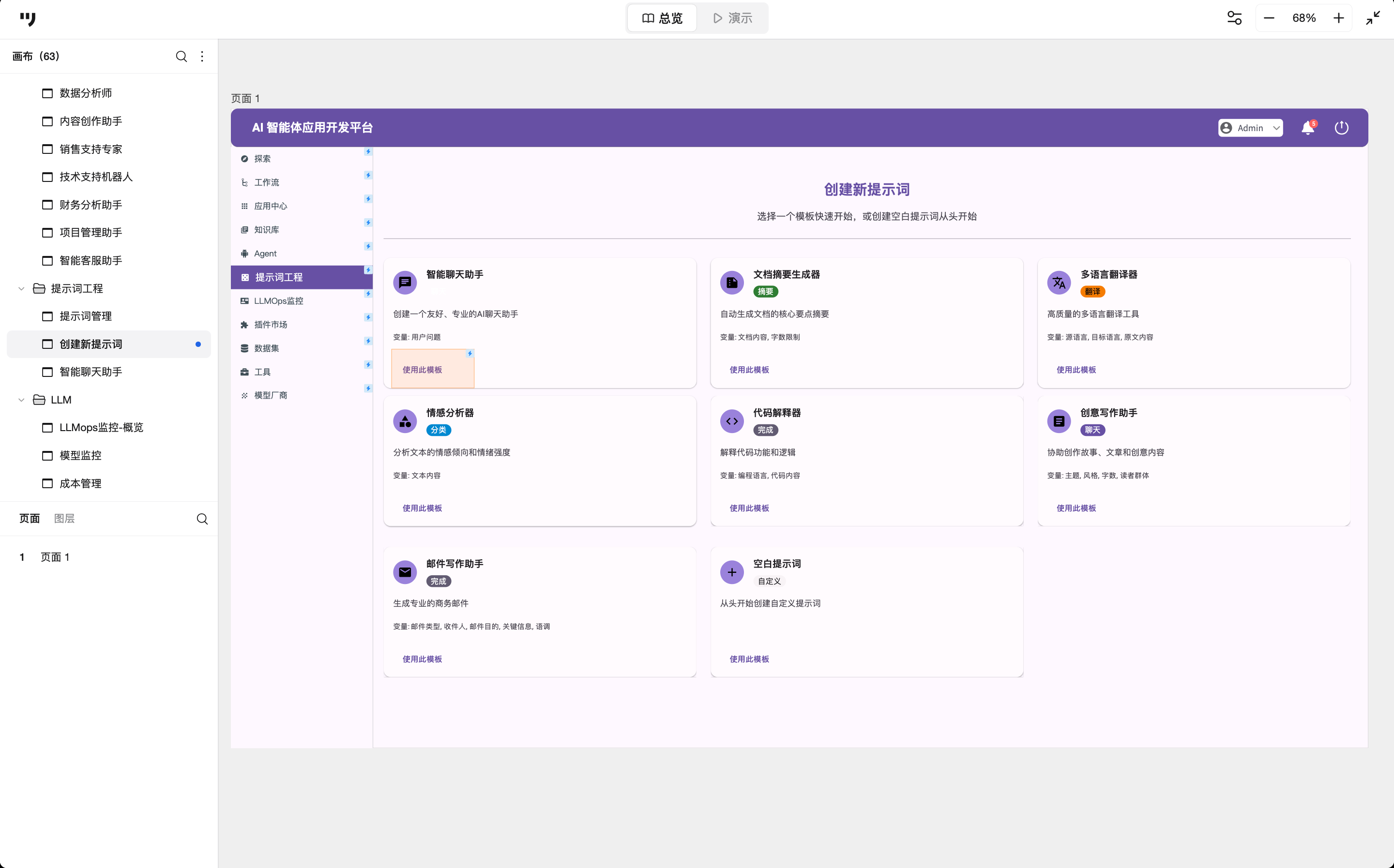 在设计上强调复用性,通过将优质Prompt模板化,用户可以在不同Agent间快速复用,体现出将提示词视为可复用、可迭代的工程资产的设计理念。