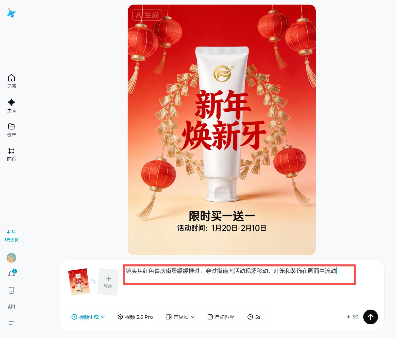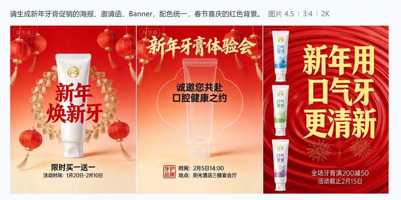 图像与视频统一输出 在活动准备阶段,我们往往先做海报、邀请函、Banner等视觉图像素材。即梦AI的一大优势是图像和视频创作在同一个生态下,不用来回切换多个工具或平台。你画出的海报配色可以直接延续到视频中。