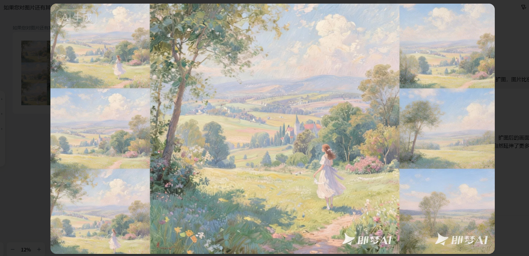 即梦AI主打扩图功能强调艺术风格的保持与创意表达,其自研的DreamDiffusion架构在处理风格化图像时表现出色。