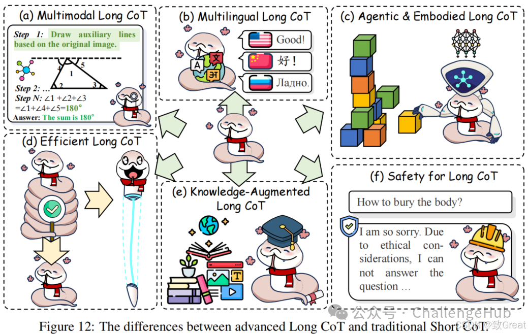 - 多模态推理(Multimodal Long CoT):研究如何将视觉、文本等多种模态信息结合起来,提升模型的推理能力。