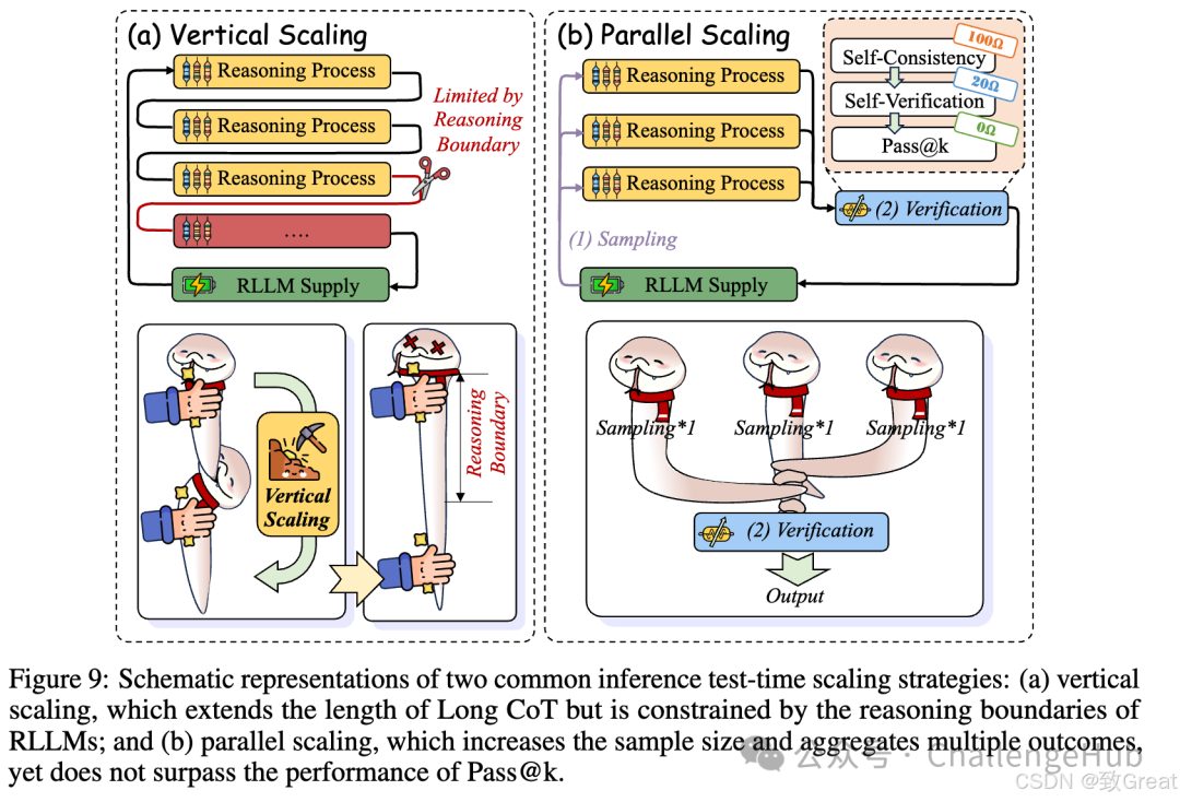 - 过思考(Overthinking):有研究发现,过长的推理链可能导致性能下降,这种现象被称为“过思考”。例如,Xie等人的研究表明,推理链的长度与准确性之间存在一个最优值。
