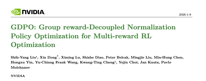论文链接:https://arxiv.org/abs/2601.05242代码链接:https://github.com/NVlabs/GDPO项目链接:https://nvlabs.github.io/GDPO/HF链接:https://huggingface.co/papers/2601.05242