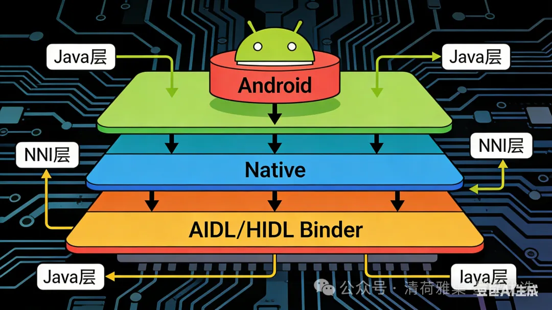 摘要:在 Android 系统演进中,Java 与 Native 的协同日益紧密——上层 App 通过 Java AIDL 调用系统服务,而底层 HAL 或核心模块则采用 C++ 实现的 HIDL/AIDL-N。如何高效打通 Java ↔ JNI ↔ AIDL/HIDL Binder 全链路?Google 早已在 AOSP 中构建了一套自动生成 JNI 桥接的机制,但多数开发者仍手动编写胶水代码,导致维护成本高、性能瓶颈突出。本文首次系统性整合三大关键技术:AIDL 自动生成 JNI 桥接、HIDL 服务的 JNI 集成模式、跨进程回调的序列化与零拷贝优化,为构建高性能、低延迟、可维护的跨语言系统服务提供工业级解决方案。