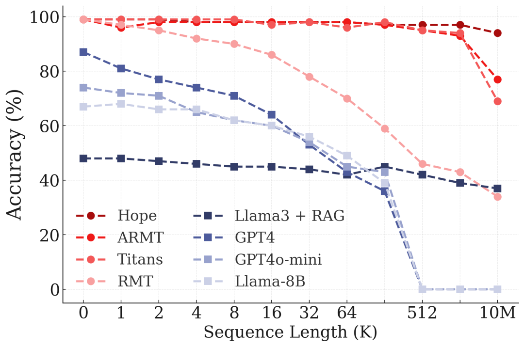 - 超长上下文:HOPE能够处理10M+ token的上下文,远超现有模型