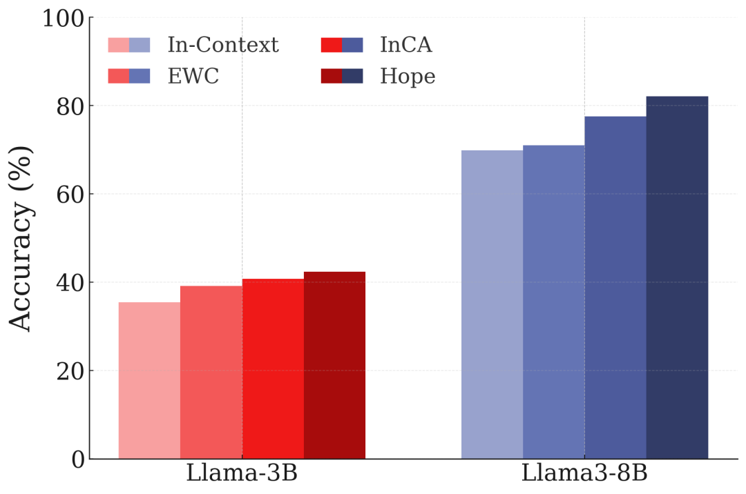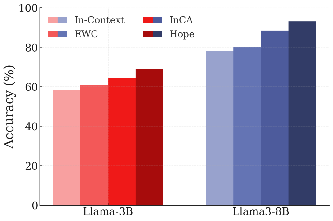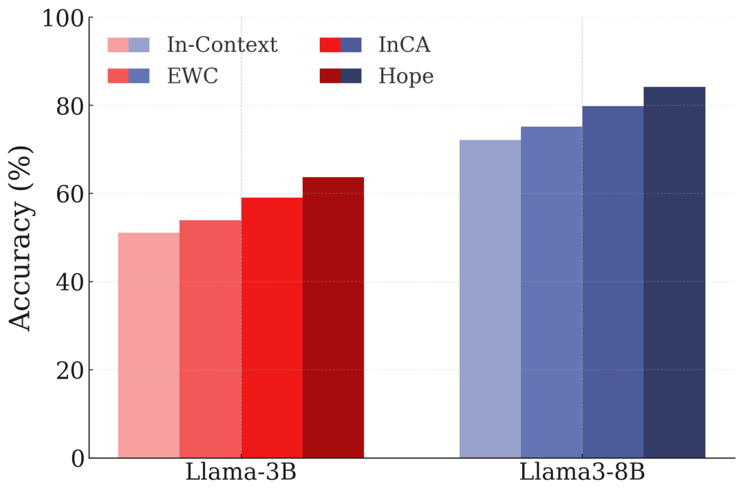 - HOPE-3:几乎恢复了非持续学习场景下的ICL性能
