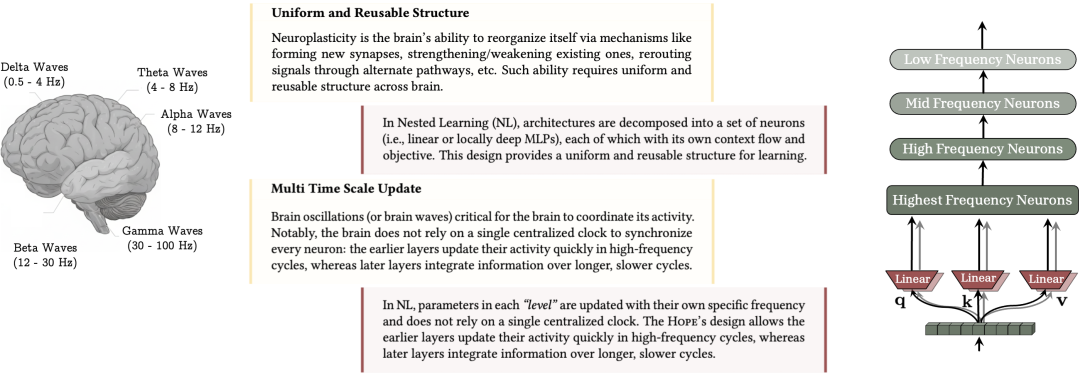 HOPE的设计高度符合神经科学中的多尺度可塑性原理: