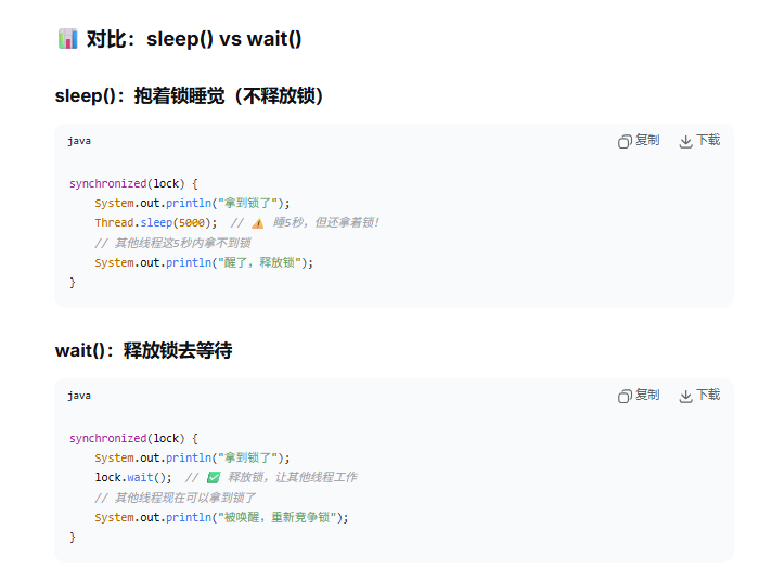 ▶(虽然都能设置超时时间,但是wait的设计主要还是为了提前唤醒,设置超时时间是后手选择;而sleep的设计是为了到时间才唤醒,设置超时时间是更必要的)