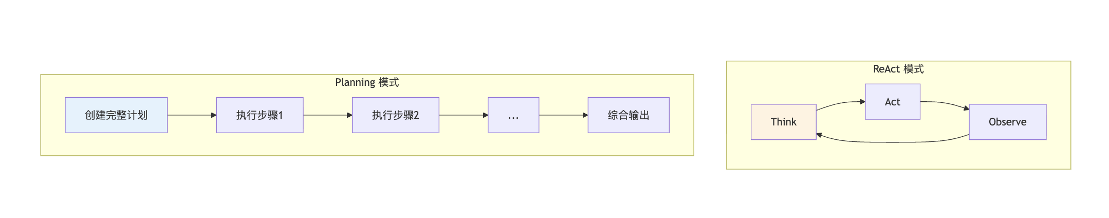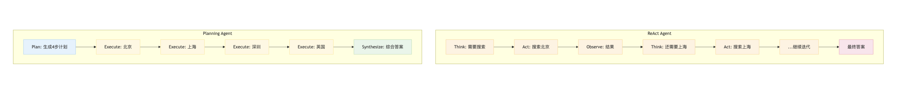 | 对比验证 | 通过 ReAct vs Planning 的对比,展示两种模式的差异 |