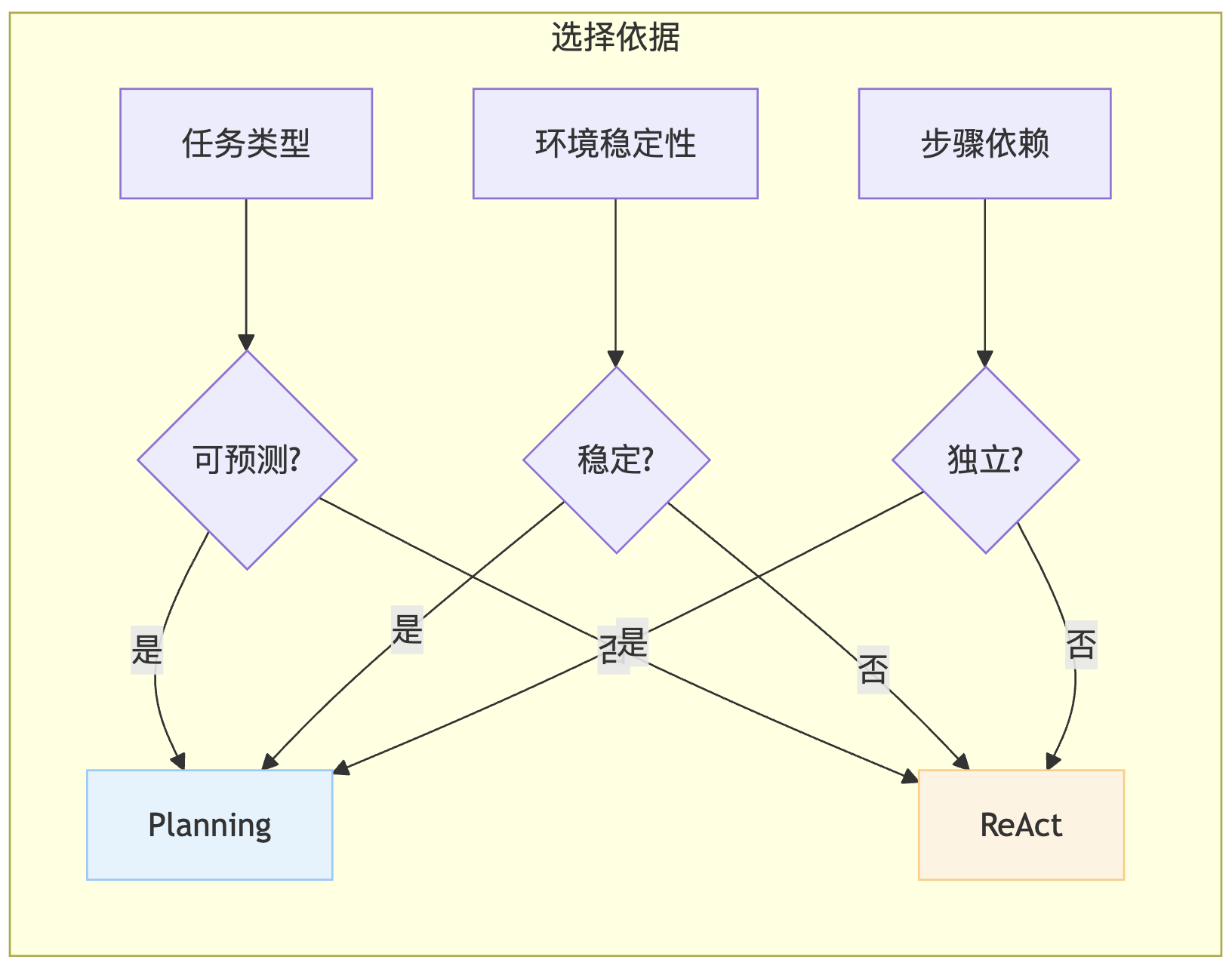 | 判断维度 | 选择 Planning | 选择 ReAct |