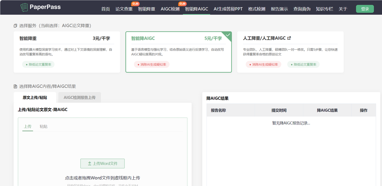 现在也提供降重与AIGC相关检测入口,流程上更顺手:先扫一遍相似度,看红黄段集中在哪,再回去针对性改写,最后再跑一次确认改动是否到位。 要强调一下使用方式:学校最后以指定系统为准(比如知网/维普等),PaperPass报告适合做预检和反复迭代,不建议只跑一遍就直接提交。把它当成“查漏补缺”的那张网,稳住收口。