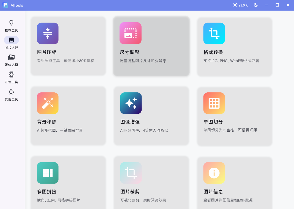 使用MTools,你可以完成从基础到高级的各类图片处理任务,软件支持超过12种图片格式的相互转换与专业压缩。