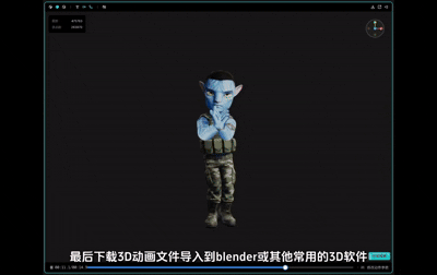 5. 输出结果 用户可选择导出视频用于发布,也可导出模型与动画应用在其他工具或引擎中。 整个制作全过程发生在浏览器端,无需本地安装软件或配置运行环境。