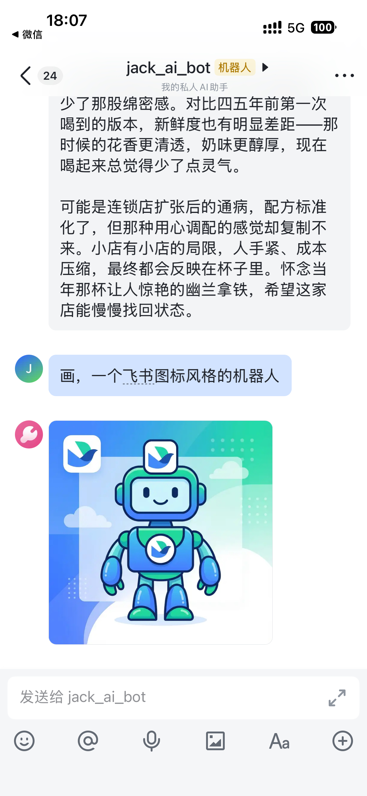 我的几个小诉求很简单,在飞书机器人对话框里实现: