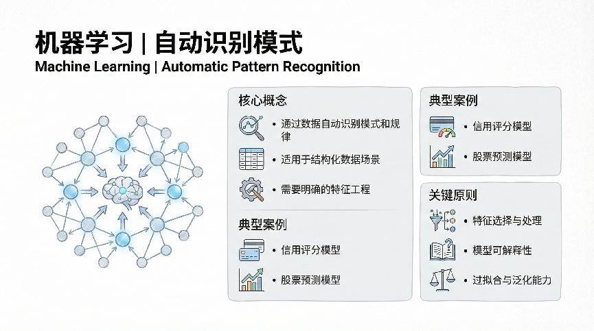以前做一个垃圾邮件过滤器,你得写一堆规则:包含”中奖”这个词的是垃圾邮件,标题全是大写字母的是垃圾邮件,含有可疑链接的是垃圾邮件……但规则永远写不完,漏网之鱼也越来越多。机器学习的做法是:给我一万封正常邮件和一万封垃圾邮件,让算法自己去找规律。结果发现,机器学出来的模式比人工规则准确得多,而且还能不断进化。