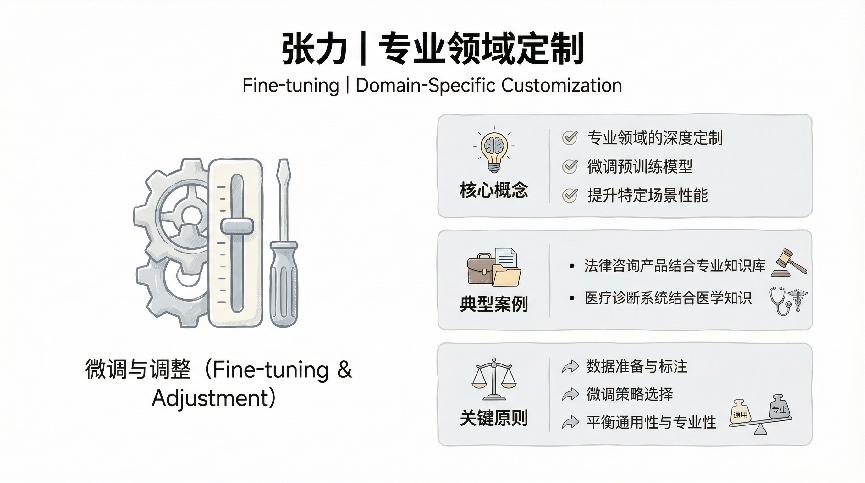 “张力”这个词可能不太常见,它说的是针对特定领域进行深度定制和优化的能力。通用大模型虽然强大,但在专业领域往往不够精准,这时候就需要通过微调、提示词设计、知识注入等方式,让模型在特定领域表现出专业水准。