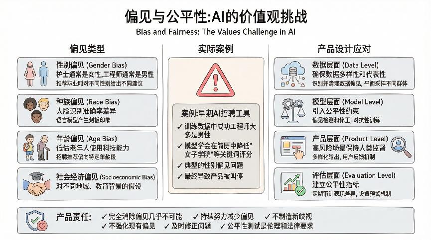 - 评估层面:建立针对不同群体的公平性指标;定期审计产品在不同人群中的表现差异;设置预警机制,当某个群体的体验显著低于平均水平时触发审查。
