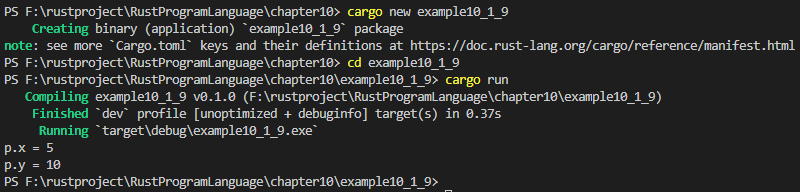 PS F:\rustproject\RustProgramLanguage\chapter10> cargo new example10_1_2