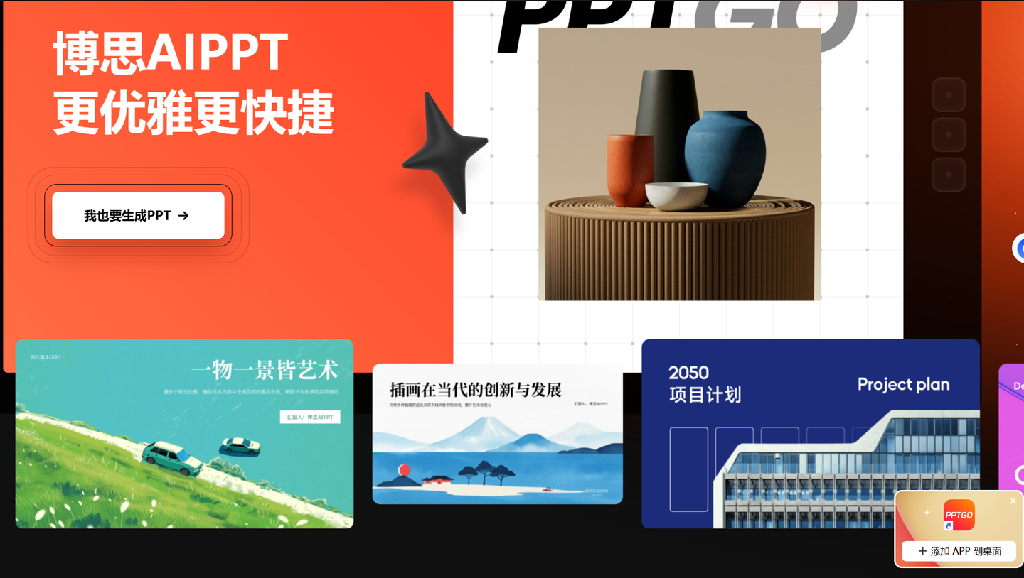 四、PPTGO——极速出稿的自我介绍PPT一键生成工具